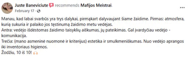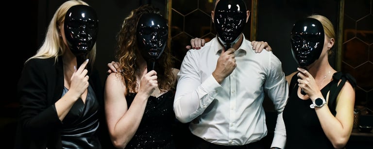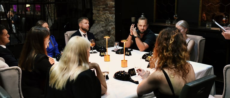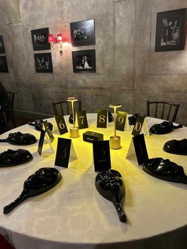 Prisitaikome prie jūsų vizijos, padedame išsirinkti vietą, pasirūpiname stalo atributika, staltiesėmis, muzika, kaukėmis ir net stendu su taisyklėmis – kad viskas vyktų sklandžiai ir stilingai. Kad vakaras būtų tikrai jūsų, prieš renginį paprašome užpildyti trumpą anketą su klausimais ir pageidavimais.