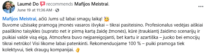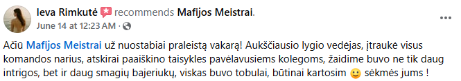 Esame vieninteliai Lietuvoje, kurie neveda žaidimo pagal šabloną – improvizuojame kartu su jumis, todėl kiekvienas žaidimas tampa unikaliu nuotykiu!