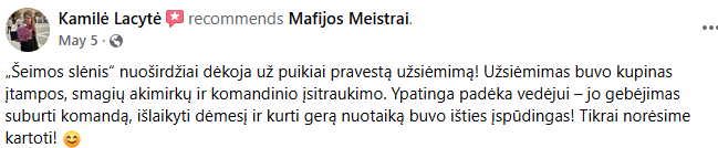 Kai seniai nesimatėte – geriausia susijungti per bendrą nuotykį.Kitoms jūsų šventėms, kuriose norisi kažko ypatingo